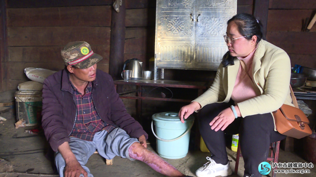 杨春华忙碌的同时,妻子杨文勤正在排路坝村委会整理着相关材料,待手上工作告一段落,她又匆匆忙忙地到阳坡小组入户走访,看望被烫伤的密生才,并给他女儿送一些衣服。