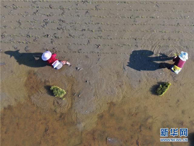 云南省勐海县勐遮镇曼勒景罕村村民在栽插水稻(2月13日摄)。
