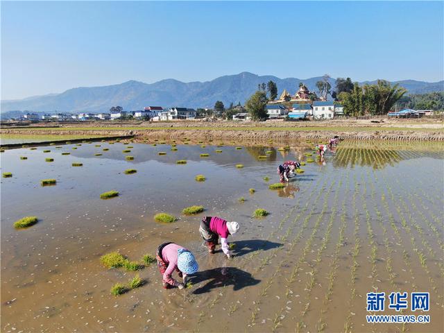 云南省勐海县勐遮镇曼扫村村民在栽插水稻(2月13日摄)。