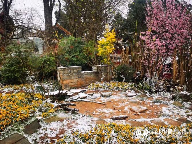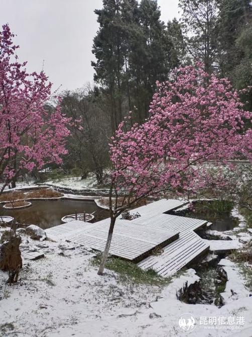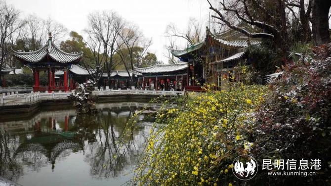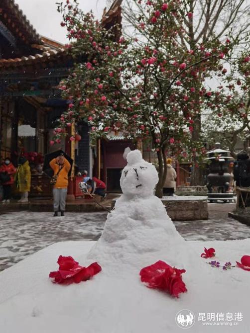 大观公园牡丹盛开,红嘴鸥感受到昆明雪景的别样之美。
