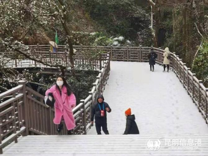 昆明信息港讯 记者杨雁 2022年2月22日,周二,农历正月二十二,一个有爱的日子,一个“很2”的让人开心的日子。上午9点多,一场雪花飘落春城,久违的雪花让春城人民乐开了花,让我们一起来看看昆明动物园这只雪中嬉戏的“2”虎;捞渔河湿地公园雪中娇姿的郁金香;金殿名胜区和西山华亭寺傲雪绽放的昆明市花山茶;黑龙潭的雪景中的梅花;郊野公园的美人梅;草海大坝上的鸥群;雪中安静的翠湖公园和昆明植物园……