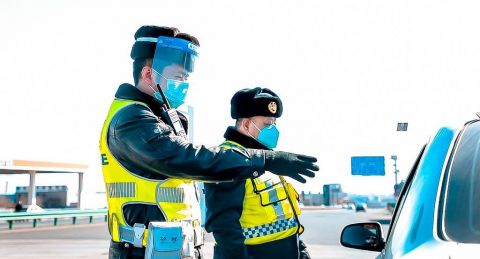 2月20日,内蒙古包头市组织公安交警执法人员在高速出入口检查过往车辆。(受访者供图)