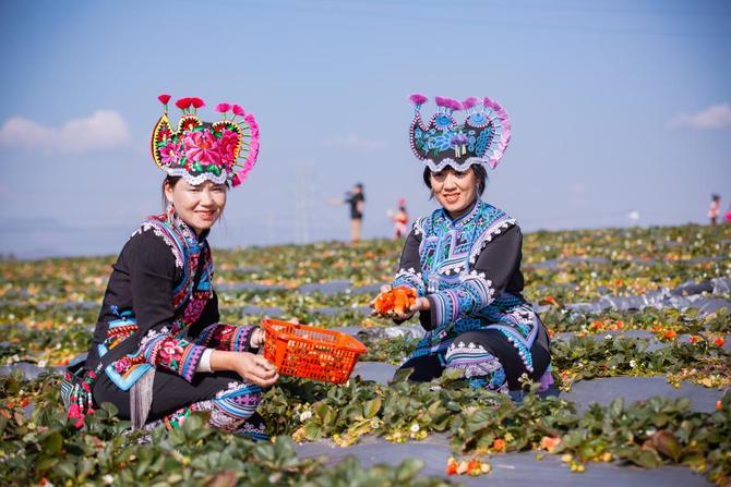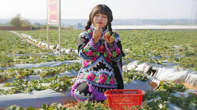 楚雄彝族自治州永仁县,土地肥沃,阳光充足,四季瓜果飘香。12月至次年2月,永仁草莓陆续成熟,销售到全国各地备受市场青睐。草莓是永仁县特色水果的靓丽名片。