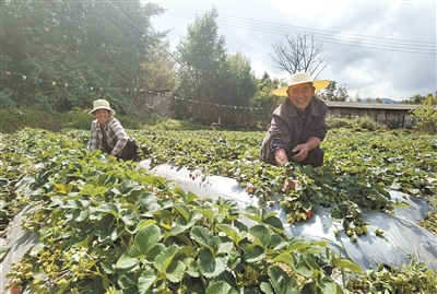 近年来,曼歇坝村加大农旅融合的开发力度,通过推广应用先进栽培技术、规模化种植等方式,大力发展草莓产业,带动农民增收,助力乡村振兴。