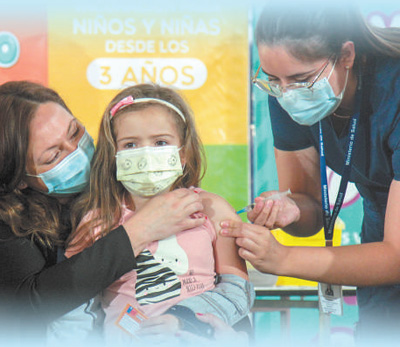 2021年12月7日,一名儿童在智利首都圣地亚哥一处疫苗接种点接种中国新冠疫苗。新华社发