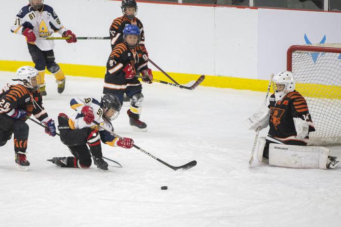 2021年12月11日,2021-2022赛季北京市青少年冰球俱乐部联赛在北京各大冰场继续角逐。新华社发(胡星宇摄)