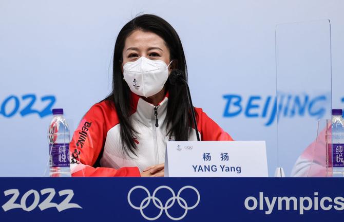 2月14日,北京冬奥组委运动员委员会主席杨扬在新闻发布会上。新华社记者杨磊摄