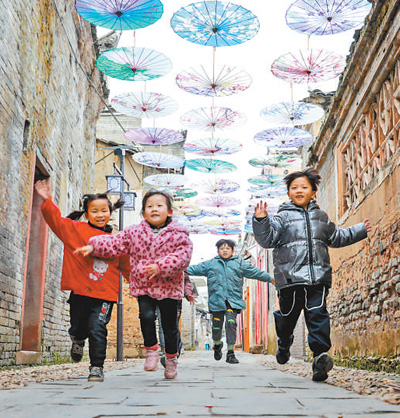 江西省吉水县白沙镇,孩童在巷道中玩耍。廖 敏摄(人民视觉)
