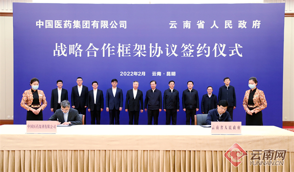 2月27日下午,省政府与中国医药集团有限公司在昆明签署战略合作框架协议。