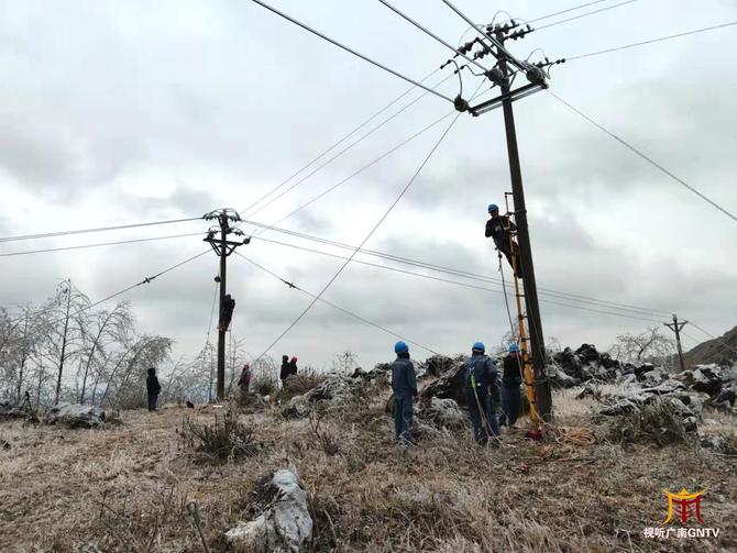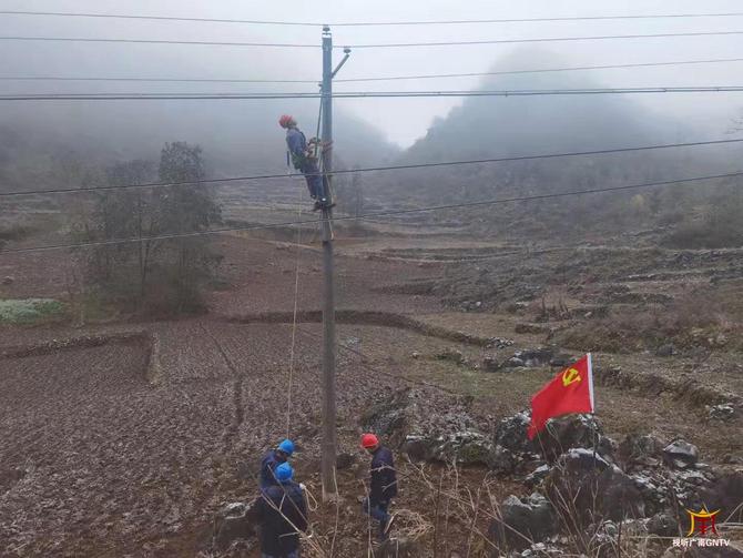 近日,受寒潮天气影响,广南县各地出现大幅度降温,并伴有雨夹雪天气,黑支果乡片区供电线路因冰灾故障停运。云南电网有限责任公司文山广南供电局第一时间启动应急响应,紧急集合电力抢修队伍迅速联动,集全局力量和物资,对故障线路及设备进行抢修。
