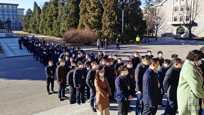 上午8点半,中青班学员排队入场。(总台央视记者石丞拍摄)