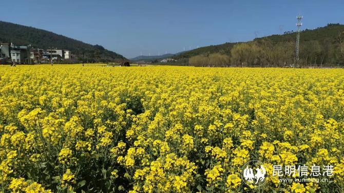 昆明信息港讯 记者杨雁 每年2~3月,安宁金色螳川一地金黄,位于安宁市温泉街道后山崀村牧羊湖附近新种植的200余亩油菜花在眼前无限延伸至远处,花田中用6个颜色彩色油菜花组成的“幸福号列车”已经出发。