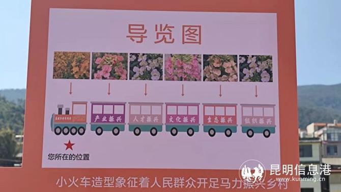 作为今年螳川区域的全新亮点,后山崀村民委员会于去年国庆期间,在与螳川一河之隔的牧羊村民小组区域,将拆除大棚后的200亩土地进行重新规划,扩种了传统的金黄色油菜花。同时,后山崀村民委员会与云南农业大学合作,在花田中布景种植了6个颜色的彩色油菜花,彩色油菜花构成一列“美丽乡村号列车”图案,这列花田火车分1个车头和5节车厢,分别用红色、深粉色、桃红色、浅粉色、樱花白色等不同颜色的彩色油菜花装点,牧羊村“美丽乡村号”列车寓意温泉街道办事处带领辖区5个村(社区)共同实现五大产业振兴,齐心合力、奋发向上,构筑温泉街道发展新局面。