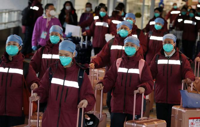 2月19日中午,由中山大学附属第一医院选派的第二批内地援港抗疫医疗防疫工作队队员在广州集结出发,家人到医院为队员壮行。(石磊 摄)