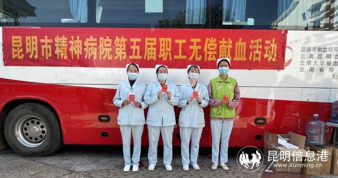 昆明信息港讯 记者张敏 3月7日,昆明市精神病院举行第五届职工无偿献血活动。全院共有86名职工成功采血,献血量达到18000ml,以无偿献血的实际行动诠释医者初心。