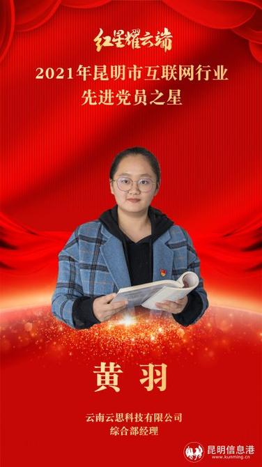 2015年,她加入云南云思科技有限公司,现任公司综合部经理一职,主要负责公司后勤工作。作为公司一员,她在岗位上始终如一,严谨求实,兢兢业业,认真完成各项工作任务;作为支部一员,她时刻以党员的高标准严格要求自己,在理论学习和党建工作方面发挥了一名共产党员良好的先锋模范作用,以饱满的工作热情、扎实的工作作风和优异的工作成绩,得到公司上下一致好评。