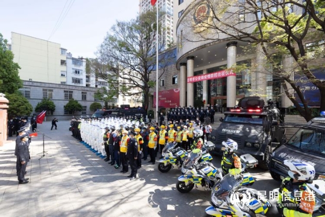 昆明信息港讯 记者合宇聪 3月13日上午,昆明市公安局举行疫情防控誓师大会暨出征仪式在市局110指挥中心大楼营区举行。