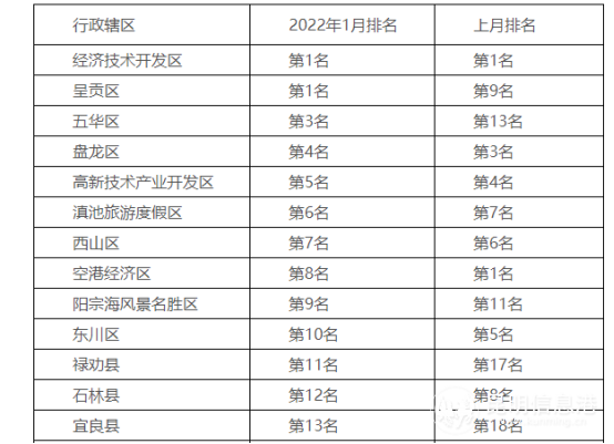 昆明信息港讯 记者张水燕 3月15日,昆明市生态环境局发布1月昆明市主要集中式饮用水源地、河流水环境质量综合排名情况显示,经开区和呈贡区在昆明市各行政辖区水环境质量排名中并列第一。