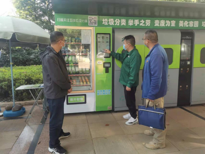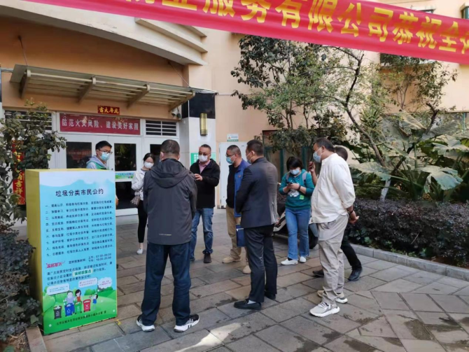 在五华区有关负责人的陪同下,考察人员先后参观了五华区人民政府和金通苑两个生活垃圾分类示范点,实地查看了示范点分类设施设备配置、误时投放点建设、垃圾分类收集清运、定时定点投放等情况。
