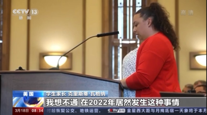 学生家长 克里斯蒂·瓦格纳:多日以来,我对这种种族主义活动感到生气,我也感到很悲伤,我想不通,在2022年居然发生这种事情。实际上,这种种族主义行为不仅仅发生在查塔姆县,在北卡罗来纳州,甚至整个美国都存在。教育政策的制定者们,我希望你们可以比以往多教一教学生美国历史,包括好的、坏的和丑恶的事情,让他们知道美国是怎样走到今天的。(央视新闻可客户端)