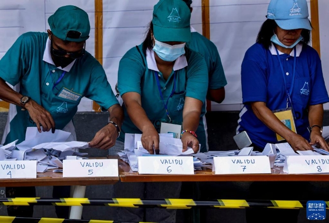 3月19日,工作人员在东帝汶帝力统计选票。当日,东帝汶举行独立以来的第5次总统选举,投票结果将于数日内公布。新华社发(阿莫里摄)