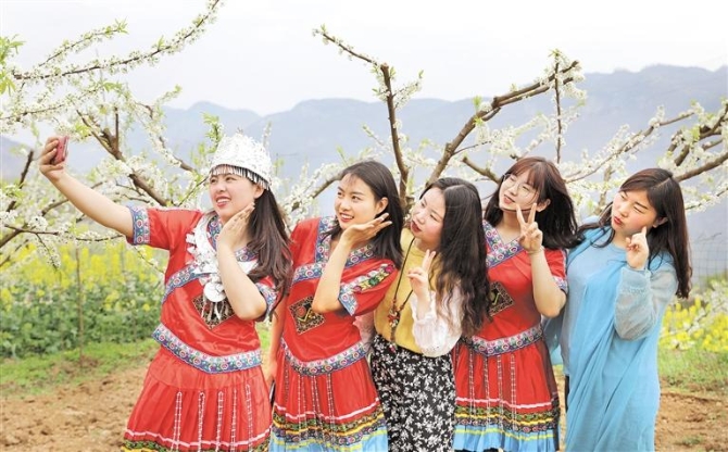 阳春三月,地处乌江源头的黔西市太来乡方田村李子花绽放,如朵朵白云点缀山间,又像雪花绽放枝头,在春日暖阳下显得分外妖娆,吸引了不少游客前来踏青赏花。(贵州日报天眼新闻 记者翟培声)