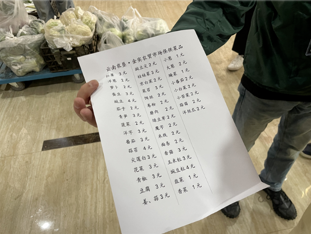 “各大商超在该片区的订单都会优先配送。”生活物资保障组工作人员介绍,管控区内已引入云南农垦集团、家乐福、永辉、盒马鲜生等大型供货商和商超,拓宽居民购物渠道,同时通过网上订购、电话预定、志愿者帮购等方式,确保物资用品及时送进庭院和楼栋。