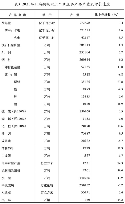 全年规模以上工业粗钢产量2361.04万吨,比上年增长5.7%;钢材产量2646.44万吨,增长0.2%;十种有色金属产量571.55万吨,增长11.8%;水泥产量11436.85万吨,下降11.9%;卷烟产量706.87万箱,增长0.5%;成品糖产量246.22万吨,下降5.7%。
