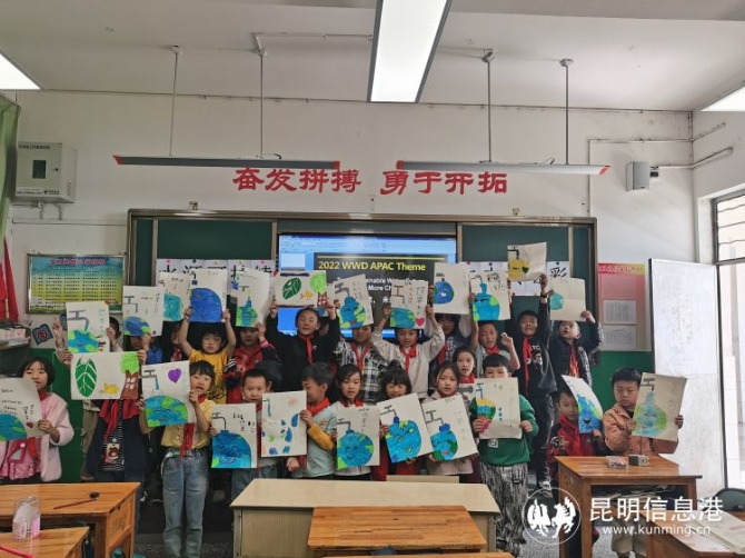 3月24日,走进百威爱心希望小学-昆明市晋宁区夕阳民族小学,通过视频和绘画的方式与小朋友们互动,让小朋友们用画笔来认识水、知道水。