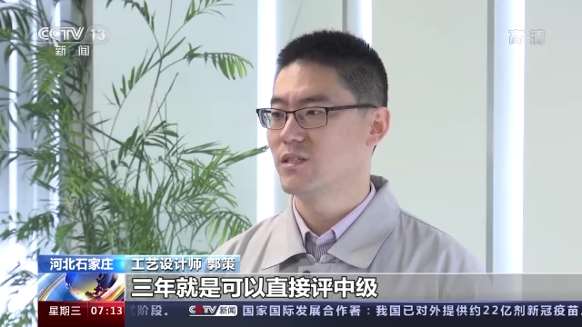 工艺设计师 郭策:现在硕士研究生毕业之后,三年就可以直接评中级,也就是说应该是省了两年时间。