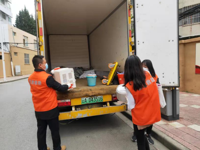 3月31日,区民政局、街道、社区以及官渡区军民盛服务中心志愿者来到人民巷50号老王家中,为老王搬家。民政工作人员首先与房东核算并支付老王欠下的各种费用,随后便一起将打包好的物品装上卡车。在此过程中,工作人员与老王在房间中仔细检查多遍,避免发生物品遗漏。
