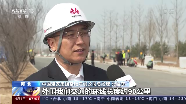 中国雄安集团基础建设公司总经理 张耀东:外围我们交通的环线长度约90公里,实现我们雄安郊野公园,容城组团,昝岗、雄县组团等全面连通。内环线全长约50公里,实现我们启动区、起步区还有高铁片区的连通。