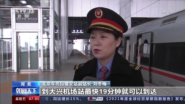 北京车务段雄安站副站长 刘冬梅:现在从雄安站到北京西站(最快)只需要50分钟,到大兴机场站最快19分钟就可以到达,截至目前车站是往返运送旅客84万人次。