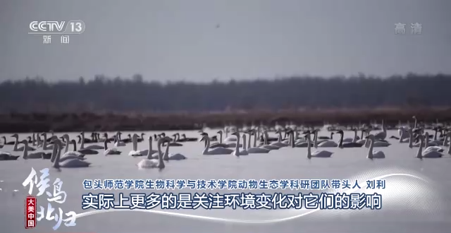 内蒙古包头南海湿地保护区监测员 陈学古:你们来得有点晚了,从2月中旬它就开始北迁,到了3月的中旬因为北方的气候变化比较大,所以北迁就加快了脚步了。