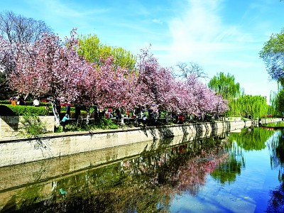 水边赏花是清明节的习俗。李韵摄