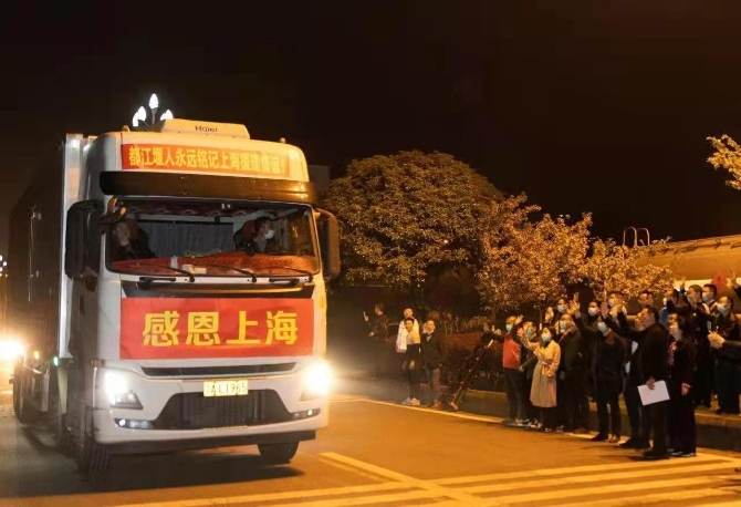 “能代表70万都江堰父老百姓给上海送这趟物资,这是我们车队的荣幸。”