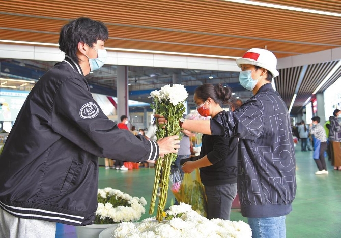 清明祭扫新风尚对鲜花市场的推动作用逐步显现。昆明斗南农产品拍卖有限公司拍卖部副经理李俊凡介绍,清明节前一两个星期,菊花市场就热起来了,黄、白菊的需求明显增大。
