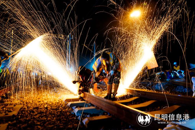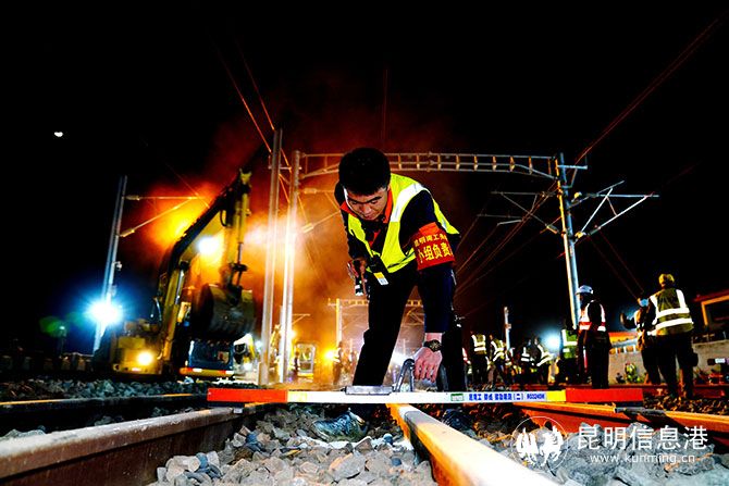 昆明信息港讯 记者上官艳君 4月11日,记者从中国铁路昆明局集团获悉,11日6时30分,经过1000多名施工人员连续8小时的深夜鏖战,云南新建弥(勒)至蒙(自)高铁接入南(宁)至昆(明)高铁(客专)的道岔顺利完成施工,标志着弥蒙高铁成功接入南昆高铁(客专),连通全国高铁网。至此,弥蒙高铁所有轨道施工全部完成,为年内开通运营创造了条件。