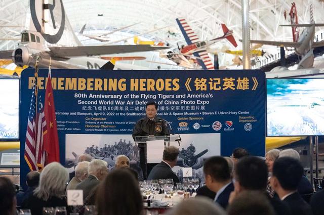 4月9日 “铭记英雄—纪念飞虎队80周年及二战时期美国援华空军历史图片展”在美国国家航空航天博物馆开幕,面对在场的美国各界人士,中国驻美大使秦刚讲了一个有关云南的故事。