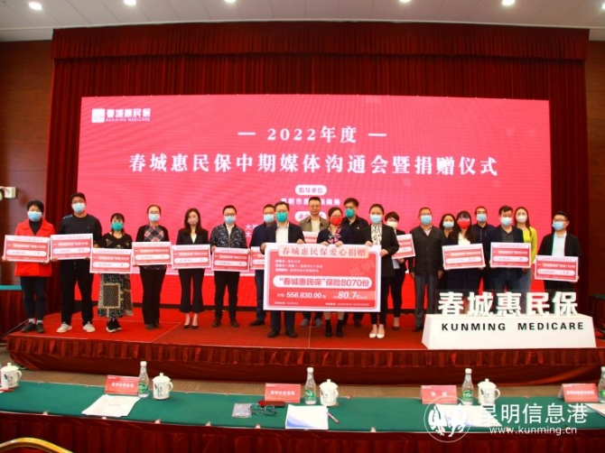 昆明信息港讯 记者昝娟娟 4月14日,2022年“春城惠民保”中期媒体沟通会暨捐赠仪式于4月14日在昆明举行。会上,20家昆明市保险、医药企业向昆明市红十字会捐赠了27000余份“春城惠民保”。