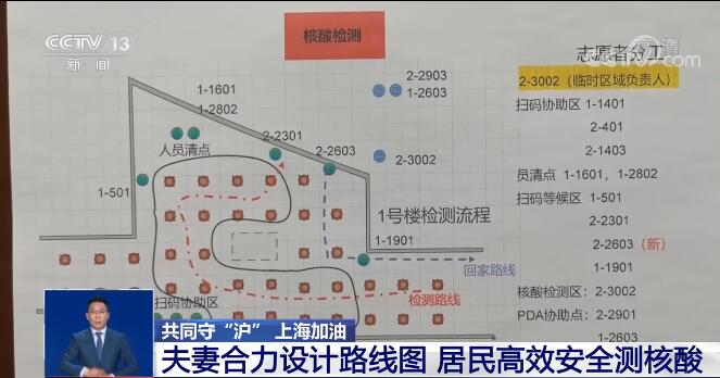 作为社区疫情防控的一道重要防线,提高居民核酸检测的效率和安全性尤为必要。在上海市长宁区泰荣苑小区,有这样一对夫妻,发挥各自所长,设计出了简明易懂的核酸检测路线图,不但使小区检测速度提升一倍以上,还最大限度减少了居民在核酸检测过程中的相互接触。