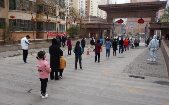 为及时阻断传染途径、排查传染风险,西宁市第一时间部署,从14日21时30分开始,西宁市主城区实行静态管理,并设立587个核酸检测采样点,市民群众有序排队参加核酸采样。