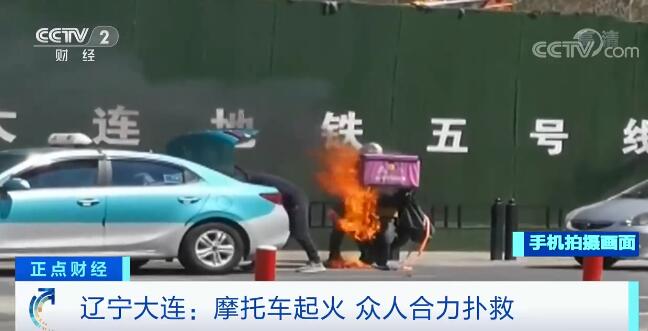 央视网消息:日前,在辽宁大连中山区的一个路口附近,一位外卖小哥在等红灯时摩托车突然起火,火势迅速蔓延。摩托车附近的出租车司机发现后,迅速下车到后备箱取出灭火器,随后,其他司机也拿来灭火器参与扑救。在众人合力下,火势很快被扑灭。