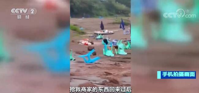 央视网消息:前两天,在重庆大渡口区牛栏坝经营茶水生意的周道菊刚来到江边就被眼前的一幕惊呆了:一夜猛涨的江水淹没了沙滩,她和另外两家商户放置在沙滩上的躺椅、遮阳伞、小桌板等全部泡在水里。