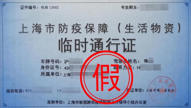 为运送非保供货物 上海三人伪造11张防疫通行证被警方查处