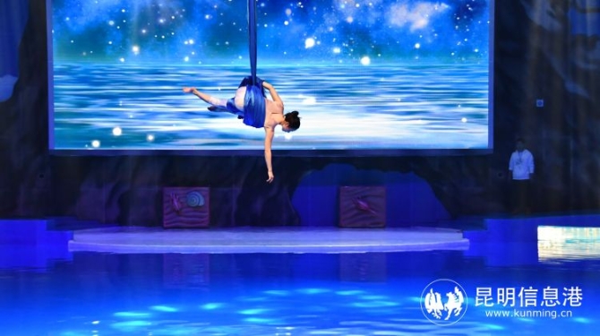 在海豚剧场,一直以来颇受欢迎的《梦幻海豚湾》将增加“国际级”专场高空杂技秀,并特邀原成都军区政治部战旗文工团杂技演员孙静昕老师,演出代表作《绸调——蓝色遐想》。这场以绸吊为基础的杂技创新大秀里,演员运用杂技中的绸吊、皮条,加上舞蹈、体操多重技艺交织,从海豚剧场30米的高空中自由荡漾落下,蔚蓝空灵的剧场内泡泡雨落下,海豚跃起,将观众引向了“蓝色遐想”的意境中,充满了浪漫情怀和艺术想象力。