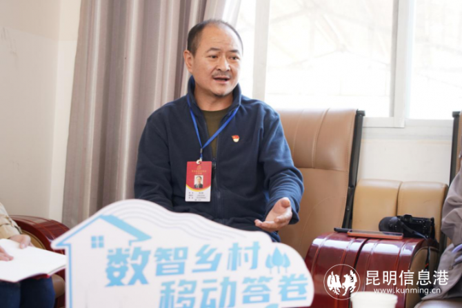 云南移动寻甸分公司派驻在村里的干部朱文荣接受采访。供图