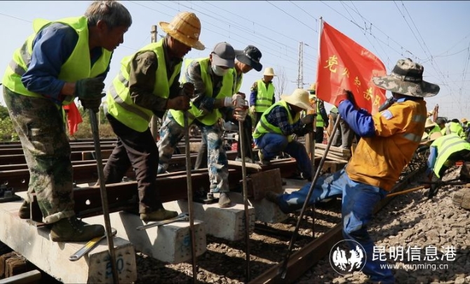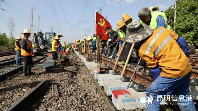 自今年2月21日以来,中国铁路昆明局集团有限公司(下称“昆明局集团”)的昆明工务机械段、昆明工务段、曲靖工务段等多个单位密切配合,对沪昆铁路云南段道岔、钢轨、轨枕、道砟等设备进行“换血大手术”:集中更新道岔关键设备、成段替换老化失效混凝泥土部件、全线打磨钢轨拓型、大规模扫除道床病害。