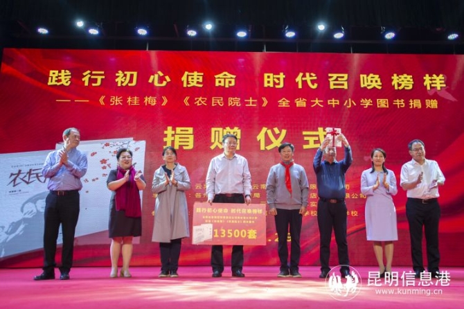 在此次活动中,云南省教育厅联合云南出版集团向全省13374所大中小学捐赠了13500套由云南人民出版社出版的《张桂梅》和《农民院士》两本图书。同时,云南出版集团所属新华书店将依托全省438个发行网点为整个活动提供全程服务保障。(图片来源:贾翔)