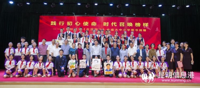 昆明信息港讯 记者王奕然 4月29日,云南省教育厅联合云南出版集团在云南师范大学实验中学共同开展“践行初心使命 时代召唤榜样”送书香到校园活动,旨在使张桂梅、朱有勇同志的先进事迹和伟大精神得到更好的宣传与推广,推动校园爱读书、读好书、善读书的浓厚氛围。